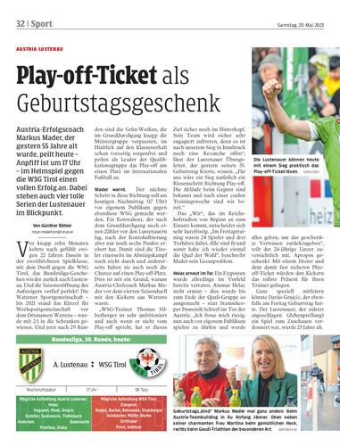Austria-Erfolgscoach Markus Mader, der gestern 55 Jahre alt wurde, peilt heute – Anpfiff ist um 17 Uhr – im Heimspiel gegen die WSG Tirol einen vollen Erfolg an. Dabei stehen auch vier tolle Serien der Lustenauer im Blickpunkt.