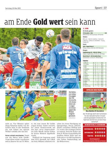 Spielbericht. Der FC Dornbirn und der Floridsdorfer AC liefern auf der Birkenwiese eine Nullnummer ab. Für die Rothosen, die heute Schützenhilfe brauchen, spitzt sich der Abstiegskampf zu.