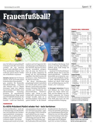 Nigerias Team hadert bei der Frauen-WM mit dem Video- beweis. Die US-Damen ziehen im Kampf um Gleichberechtigung im Sport vor Gericht.