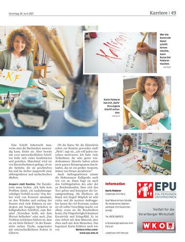 Schreiben mit Tuschen, mit Bambus- oder Fasanenfedern, auf edlem Papier und mit dem richtigen Schwung: Kalligrafie ist vor allem Übungssache. Und eine Frage der guten Anleitung. Seit einiger Zeit nimmt die Kalligrafin Karin Felderer aus Hohenems nicht nur Aufträge an, sondern gibt auch eigene Kurse.