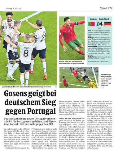 Deutschland siegte gegen Portugal verdient mit 4:2. Die Portugiesen erzielten zwei Eigentore, Ronaldo traf erstmals gegen den DFB.