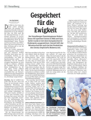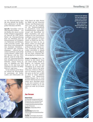 Der Vorarlberger Chemieingeneur Robert Grass (41) speichert Daten in DNA und Glas. Dafür wurde er mit dem Europäischen Erfinderpreis ausgezeichnet. Derzeit hilft der Wissenschaftler auch bei der Produktion des Corona-Impfstoffs Moderna mit.