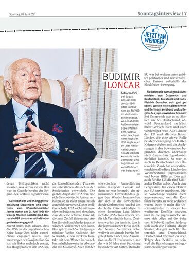Interview. Budimir Lončar war der letzte Außenminister Jugoslawiens. Hier erinnert sich der heute 97-Jährige daran, wie das Ende des Vielvölkerstaats besiegelt wurde. Von Christian Wehrschütz, Zagreb