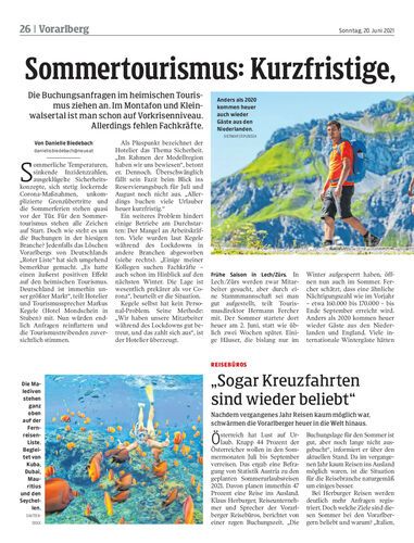 Die Buchungsanfragen im heimischen Tourismus ziehen an. Im Montafon und Kleinwalsertal ist man schon auf Vorkrisenniveau. Allerdings fehlen Fachkräfte.