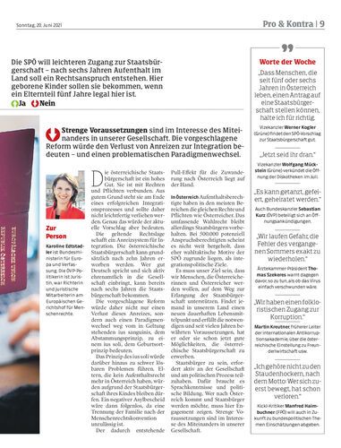 Die SPÖ will leichteren Zugang zur Staatsbürgerschaft – nach sechs Jahren Aufenthalt im Land soll ein Rechtsanspruch entstehen. Hier geborene Kinder sollen sie bekommen, wenn ein Elternteil fünf Jahre legal hier ist.
