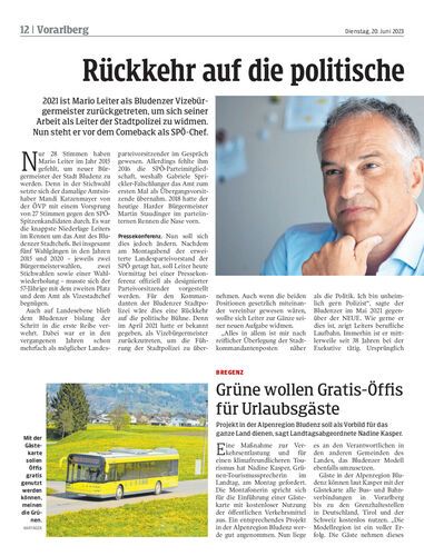 2021 ist Mario Leiter als Bludenzer Vizebürgermeister zurückgetreten, um sich seiner Arbeit als Leiter der Stadtpolizei zu widmen. Nun steht er vor dem Comeback als SPÖ-Chef.