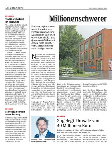 Konkurs myRobotcenter: Auf anerkannte Forderungen von rund 1,6 Millionen Euro wird es voraussichtlich eine Quote von 0,96 Prozent geben. Nicht besicherten Gläubigern droht vollständiger Ausfall.