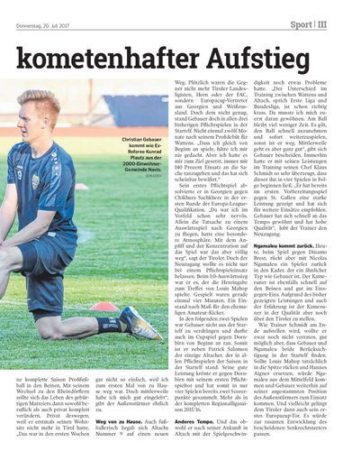 Christian Gebauer machte in den letzten zwölf Monaten eine rasante Entwicklung. Dabei fiel der heute 23-Jährige in der Jugend nicht einmal den Tiroler Akademie-Trainern auf.