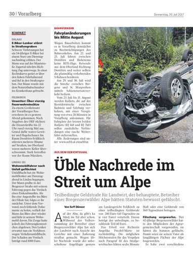 Teilbedingte Geldstrafe für Landwirt, der behauptete, Betreiber einer Bregenzerwälder Alpe hätten Statuten bewusst gefälscht.
