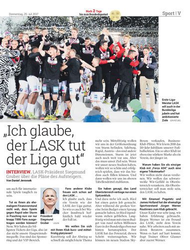 LASK-Präsident Siegmund Gruber über die Pläne des Aufsteigers. Von Daniel Jerovsek