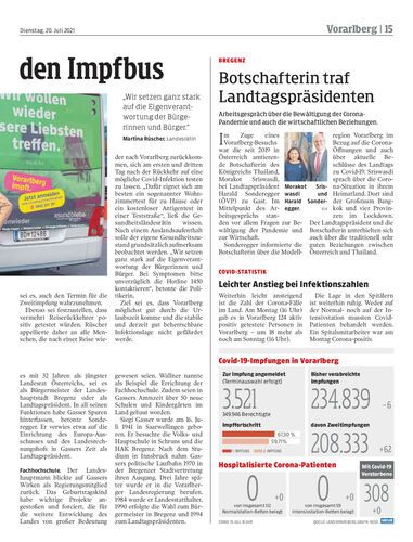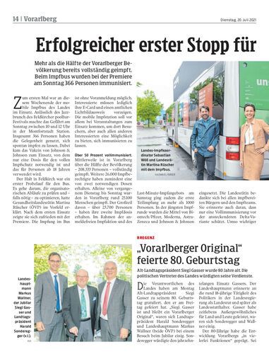 Mehr als die Hälfte der Vorarlberger Bevölkerung bereits vollständig geimpft. Beim Impfbus wurden bei der Premiere am Sonntag 366 Personen immunisiert.