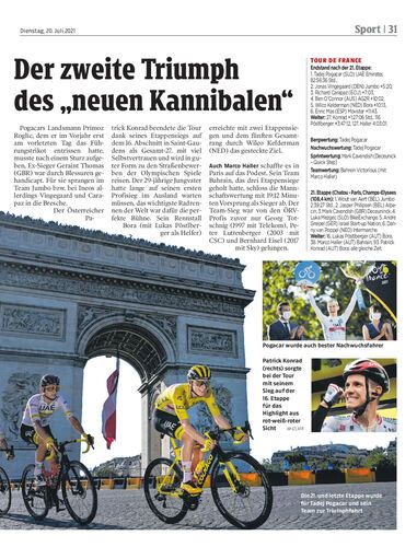Tadej Pogacar krönte sich in Paris zum umjubelten Sieger der 108. Auflage der Tour de France und wurde mit Lob der Legende Eddy Merckx bedacht. Auch Patrick Konrad durfte zufrieden sein.