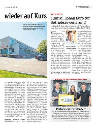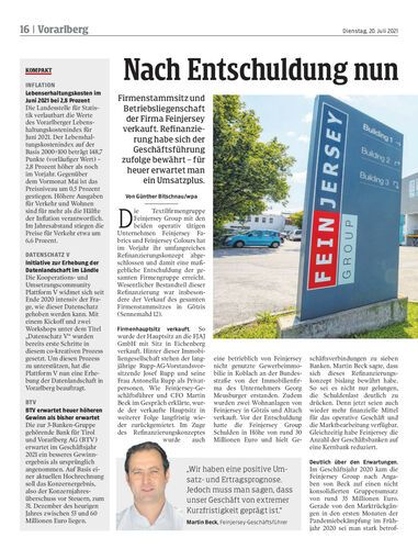 Firmenstammsitz und Betriebsliegenschaft der Firma Feinjersey verkauft. Refinanzierung habe sich der Geschäftsführung zufolge bewährt – für heuer erwartet man ein Umsatzplus.