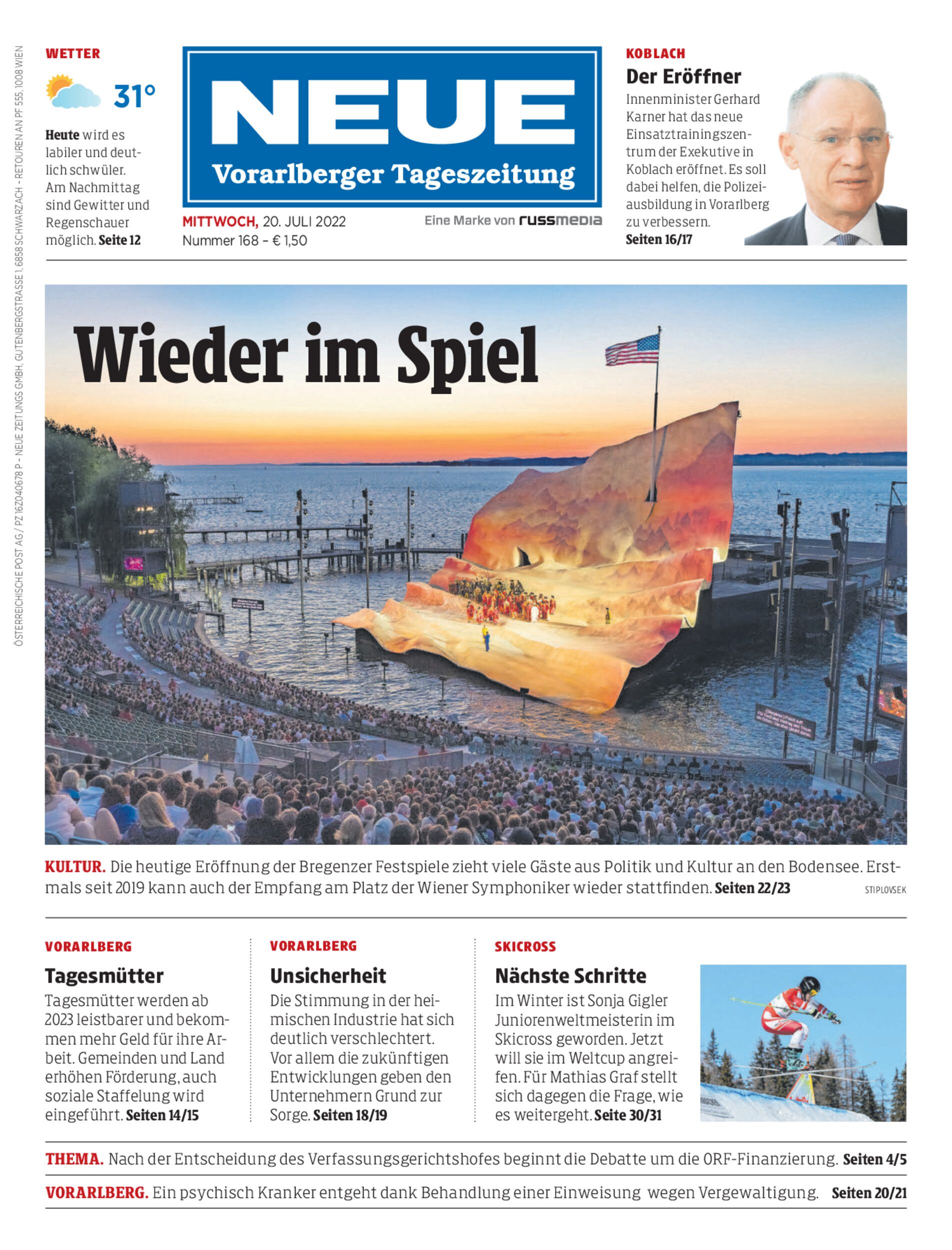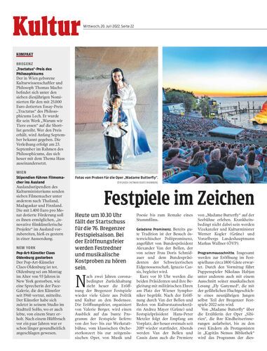 Heute um 10.30 Uhr fällt der Startschuss für die 76. Bregenzer Festspielsaison. Bei der Eröffnungsfeier werden Festredner und musikalische Kostproben zu hören sein.