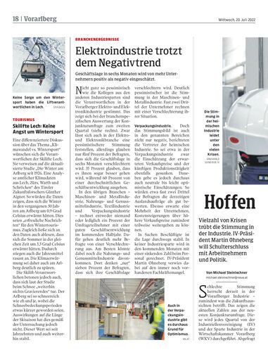 Vielzahl von Krisen trübt die Stimmung in der Industrie. IV-Präsident Martin Ohneberg will Schulterschluss mit Arbeitnehmern und Politik.
