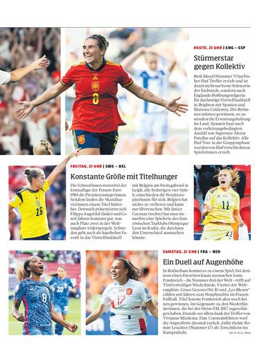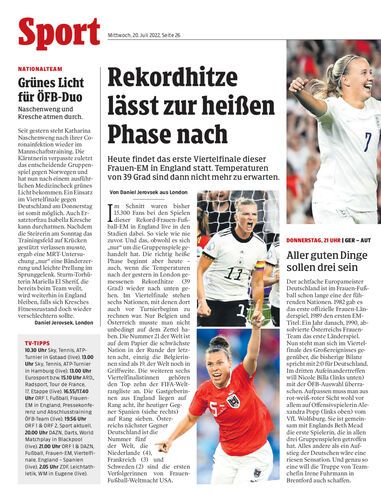 Heute findet das erste Viertelfinale dieser Frauen-EM in England statt. Temperaturen von 39 Grad sind dann nicht mehr zu erwarten.