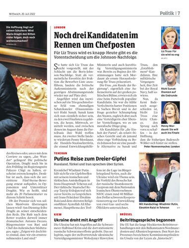 Für Liz Truss wird es knapp: Heute gibt es die Vorentscheidung um die Johnson-Nachfolge.