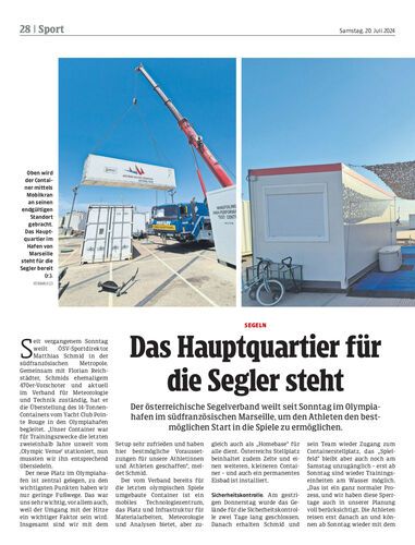 Der österreichische Segelverband weilt seit Sonntag im Olympiahafen im südfranzösischen Marseille, um den Athleten den bestmöglichen Start in die Spiele zu ermöglichen.
