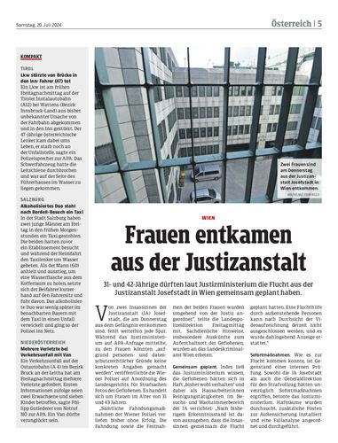 31- und 42-Jährige dürften laut Justizministerium die Flucht aus der Justizanstalt Josefstadt in Wien gemeinsam geplant haben.