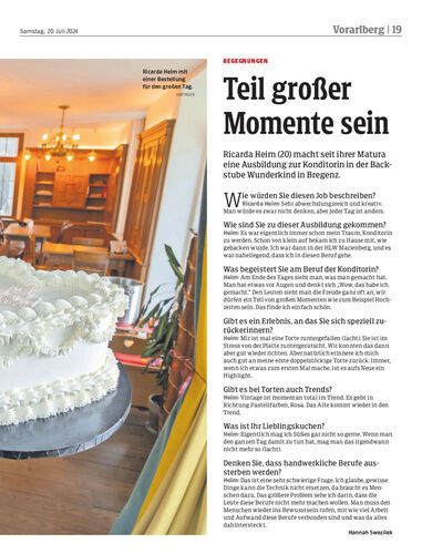Ricarda Heim (20) macht seit ihrer Matura eine Ausbildung zur Konditorin in der Backstube Wunderkind in Bregenz.
