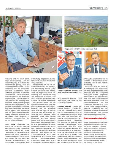 S-18-Karussell dreht sich munter weiter. Eugen Schneider von der Initiative „Lebensraum Zukunft Lustenau“ spricht sich klar gegen die Bodenseeschnellstraße aus und wünscht sich sachliche Gespräche aller Beteiligten bezüglich „anderer umsetzbarer Varianten“.