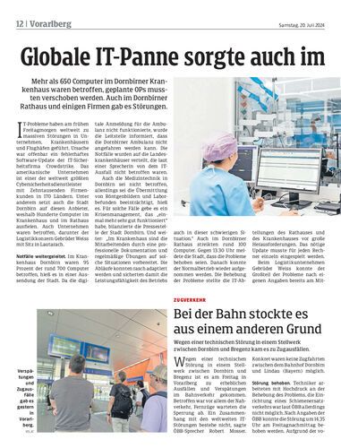 Mehr als 650 Computer im Dornbirner Krankenhaus waren betroffen, geplante OPs mussten verschoben werden. Auch im Dornbirner Rathaus und einigen Firmen gab es Störungen.