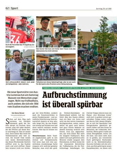 Spielbericht. Austria Lustenau unterliegt bei der Eröffnung der neuen Arena dem FC Augsburg mit 0:2. Das erste Heimspiel der Saison steht am 8. August gegen Wels an.