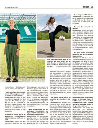 Interview. Flora Zimmermann ist seit Kindertagen begeisterte Fußballerin. Bei einem Probetraining beim SK Rapid Wien konnte sie die Verantwortlichen überzeugen und wurde prompt verpflichtet. Jetzt startet die 18-jährige in einen neuen Lebensabschnitt. Vor ihrer Abreise in die Bundeshauptstadt hat die NEUE am Sonntag die ambitionierte Wolfurterin getroffen.