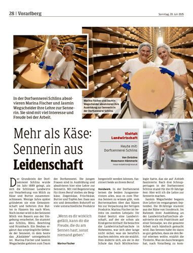 In der Dorfsennerei Schlins absolvieren Marina Fischer und Jasmin Wegscheider ihre Lehre zur Sennerin. Sie sind mit viel Interesse und Freude bei der Arbeit.