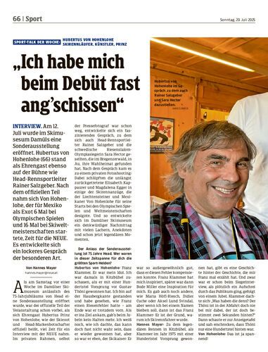 Interview. Am 12. Juli wurde im Skimusesum Damüls eine Sonderausstellung eröffnet. Hubertus von Hohenlohe (66) stand als Ehrengast ebenso auf der Bühne wie Head-Rennsportleiter Rainer Salzgeber. Nach dem offiziellen Teil nahm sich Von Hohenlohe, der für Mexiko als Exot 6 Mal bei Olympischen Spielen und 16 Mal bei Skiweltmeisterschaften startete, Zeit für die NEUE. Es entwickelte sich ein lockeres Gespräch der besonderen Art.