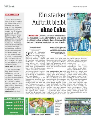 Spielbericht. Austria Lustenau muss sich daheim Europa-League-Starter Sturm Graz mit 0:1 geschlagen geben und zeigt dabei, dass man für das bevorstehende Duell mit Altach gerüstet ist.