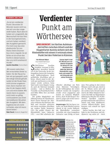 Spielbericht. Im fünften Aufeinandertreffen zwischen Altach und der Klagenfurter Austria sichern sich die Rheindörfler mit einem 1:1 erstmals einen Punkt bei den Violetten in Kärnten.