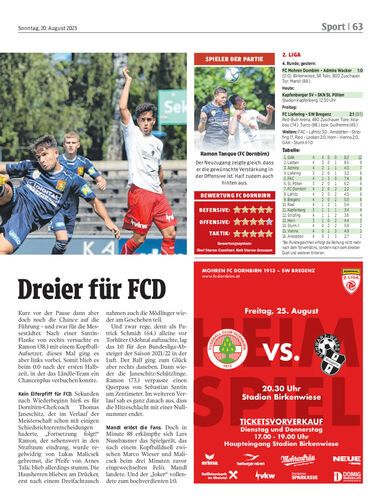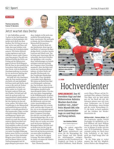 Spielbericht. Der FC Dornbirn fügt auf der Birkenwiese Admira Wacker durch das Goldtor von „Joker“ Felix Mandl (88.) die erste Saisonniederlage zu und liegt nun auf Rang sieben.