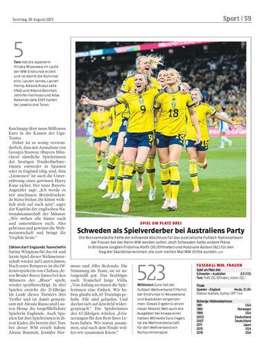Spanien und England beschließen heute (12) die Fußball-WM der Frauen in Neuseeland und Australien mit dem Spiel um den Titel.