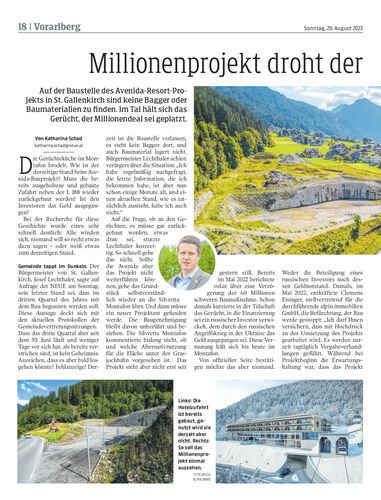 Auf der Baustelle des Avenida-Resort-Projekts in St. Gallenkirch sind keine Bagger oder Baumaterialien zu finden. Im Tal hält sich das Gerücht, der Millionendeal sei geplatzt.