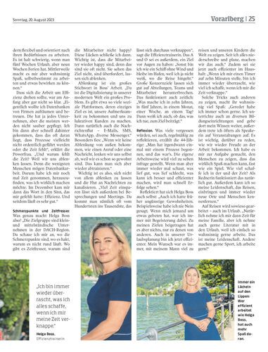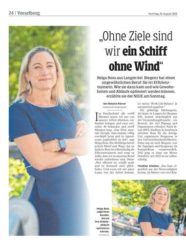 Helga Boss aus Langen bei Bregenz hat einen ungewöhnlichen Beruf: Sie ist Effizienztrainerin. Wie sie dazu kam und wie Gewohnheiten und Abläufe optimiert werden können, erzählte sie der NEUE am Sonntag.