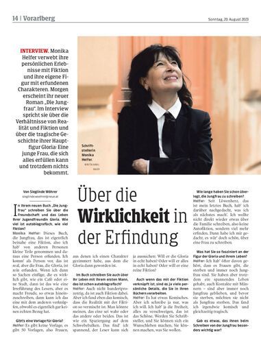 Interview. Monika Helfer verwebt ihre persönlichen Erlebnisse mit Fiktion und ihre eigene Figur mit erfundenen Charakteren. Morgen erscheint ihr neuer Roman „Die Jungfrau“. Im Interview spricht sie über die Verhältnisse von Realität und Fiktion und über die tragische Geschichte ihrer Hauptfigur Gloria: Eine junge Frau, die sich alles erfüllen kann und trotzdem nichts bekommt.
