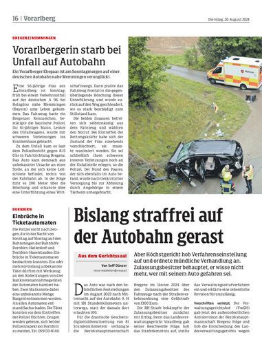 Vorarlbergerin starb bei Unfall auf Autobahn