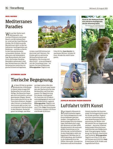 Raus aus dem Alltag, rein ins Abenteuer: Ob Natur, Tiere oder Geschichte – am Bodensee gibt es viel zu entdecken. Unsere sechs Tipps sorgen für spannende und abwechslungsreiche Erlebnisse in der Region.