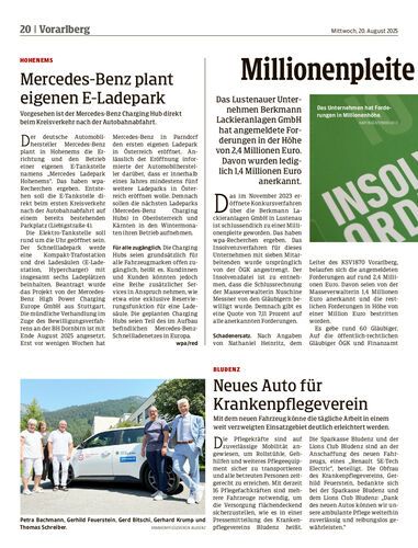 Das Lustenauer Unternehmen Berkmann Lackieranlagen GmbH hat angemeldete Forderungen in der Höhe von 2,4 Millionen Euro. Davon wurden lediglich 1,4 Millionen Euro anerkannt.