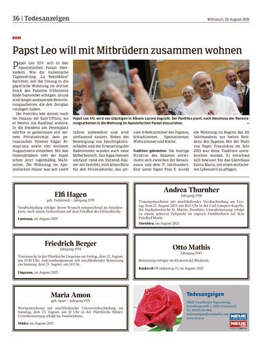 Papst Leo will mit Mitbrüdern zusammen wohnen