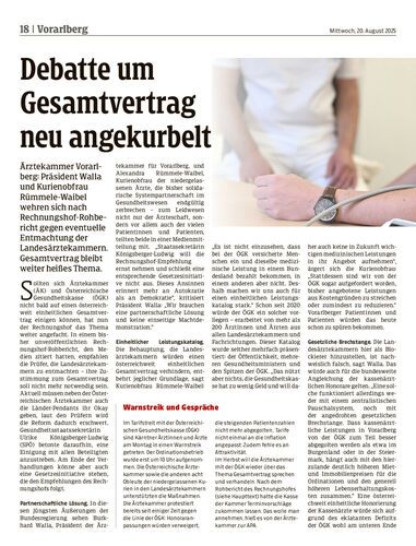 Ärztekammer Vorarlberg: Präsident Walla und Kurienobfrau Rümmele-Waibel wehren sich nach Rechnungshof-Rohbericht gegen eventuelle Entmachtung der Landesärztekammern. Gesamtvertrag bleibt weiter heißes Thema.