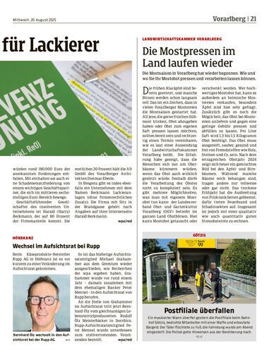 Die Mostsaison in Vorarlberg hat wieder begonnen. Wie und wo Sie Ihr Mostobst pressen und verarbeiten lassen können.