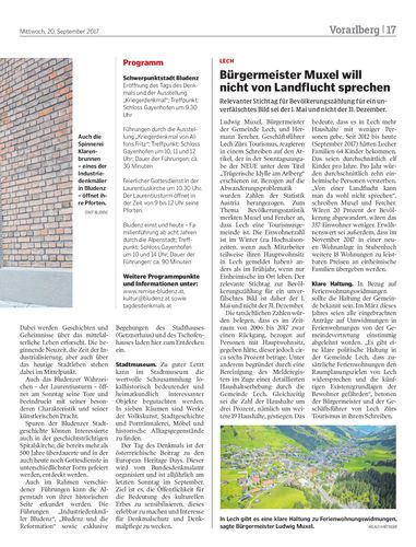 Kirchen, Ruinen, Villen, Stadthäuser, Schulen und Museen öffnen am Sonntag, 24. September, ihre Pforten. Bludenz ist Schwerpunktstadt.