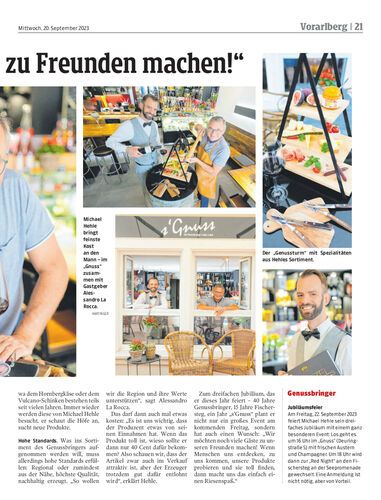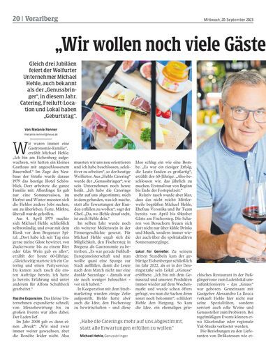 Gleich drei Jubiläen feiert der Wolfurter Unternehmer Michael Hehle, auch bekannt als der „Genussbringer“, in diesem Jahr. Catering, Freiluft-Location und Lokal haben „Geburtstag“.