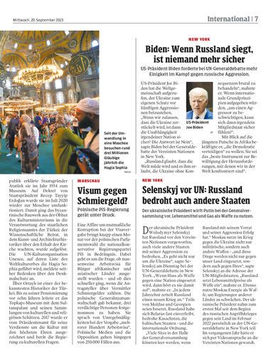 Der ukrainische Präsident wirft Putin bei der Generalversammlung vor, Lebensmittel und Gas als Waffe zu nutzen.