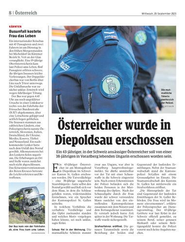 Ein 43-jähriger, in der Schweiz ansässiger Österreicher soll von einer 38-jährigen in Vorarlberg lebenden Ungarin erschossen worden sein.