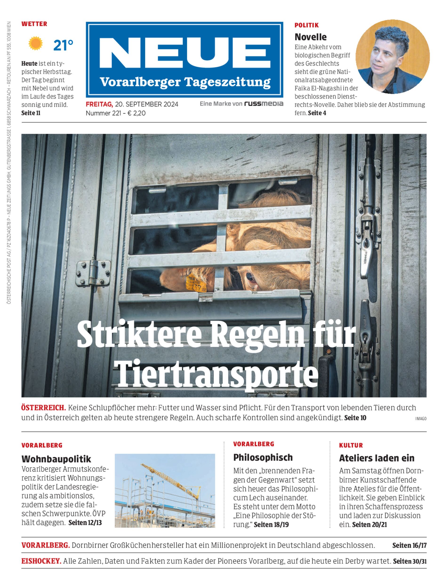 Futter und Wasser sind Pflicht. Transporte dürfen nur bei fünf bis 30 Grad Celsius Außentemperatur durchgeführt werden.