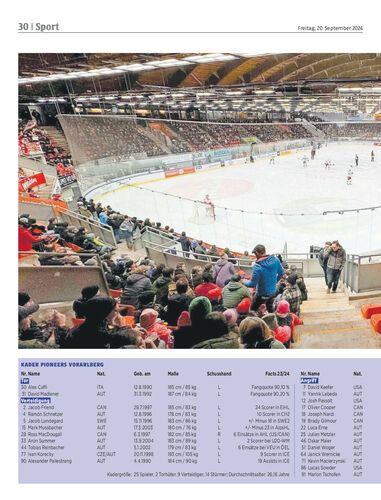 Die Pioneers Vorarlberg sind heute zum Auftakt der ICE Hockey League um 19.15 Uhr in Innsbruck zu Gast. In Klagenfurt kommt es zur Wiederauflage der Finalserie 2024.