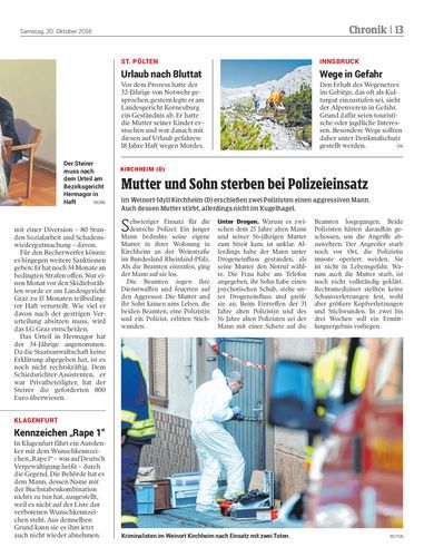 Im Weinort-Idyll Kirchheim (D) erschießen zwei Polizisten einen aggressiven Mann. Auch dessen Mutter stirbt, allerdings nicht im Kugelhagel.